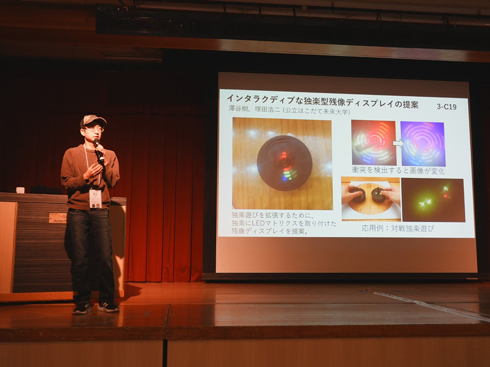 - 澤谷 樹,塚田 浩二. インタラクティブな独楽型残像ディスプレイの提案. 日本ソフトウェア科学会 WISS2025 予稿集, デモ発表 3-C19. 2025-12. [PDF]