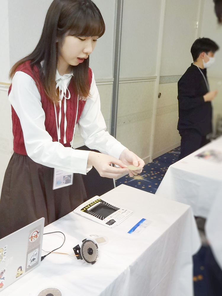 - 穂積 佳,塚田 浩二,吉田 博則. 機能性繊維を用いた組紐型デバイスの伝統的道具への応用. 日本ソフトウェア科学会 WISS2025 予稿集, デモ発表 1-C07. 2025-12. [PDF]
